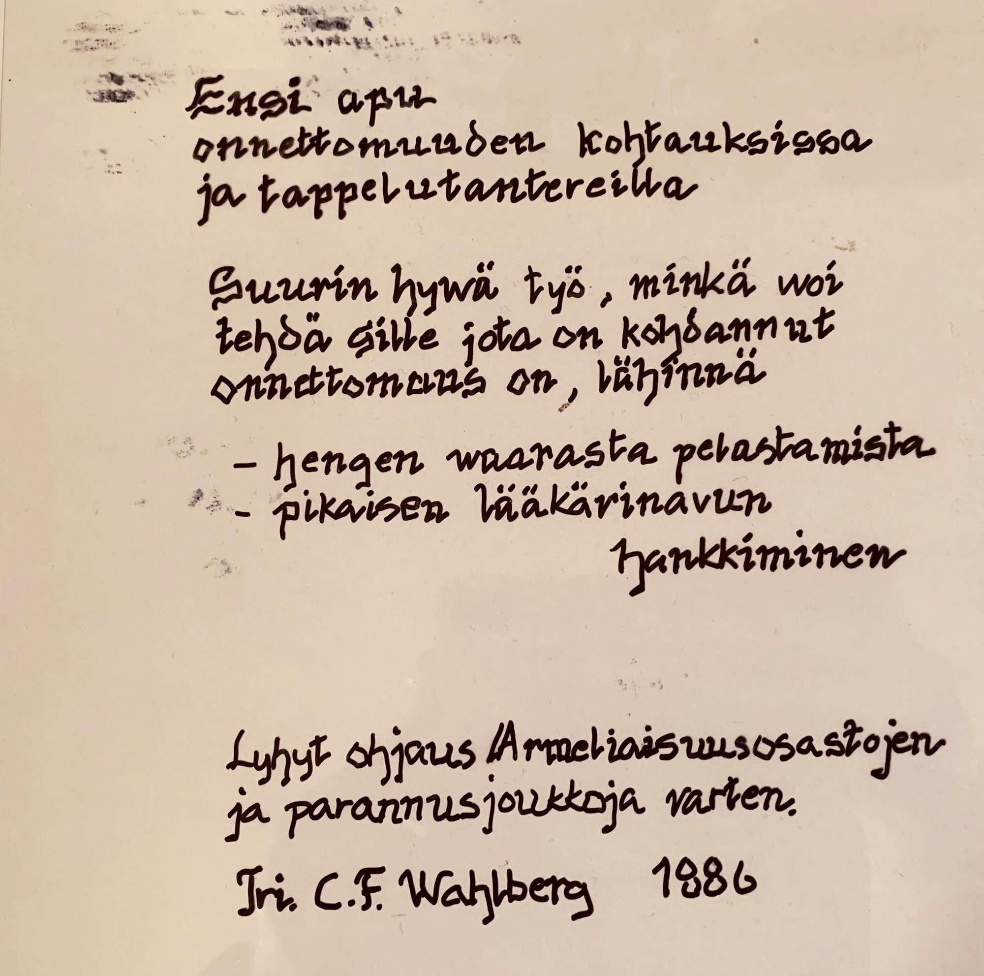 Tämän blogin otsikon olen poiminut erään ensiapukoulutettavani kommentista. Olin tuon työpaikan työntekijöitä kouluttanut useita vuosia säännöllisesti ja eräänä kertana yksi koulutettavista totesi, että: "Ensiavussa ei tule koskaan valmiiksi, vaan sen minkä nuorena oppii, se vanhana haittaa".